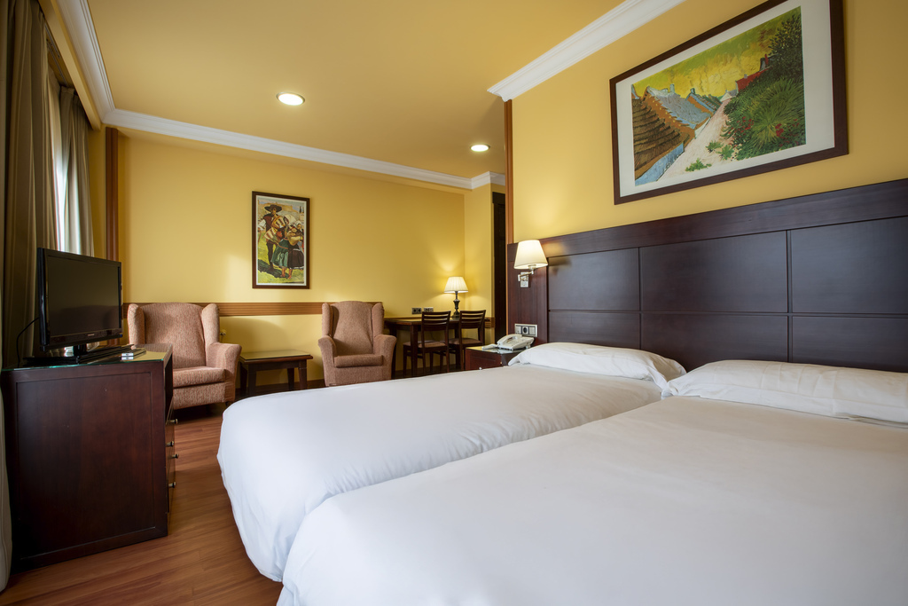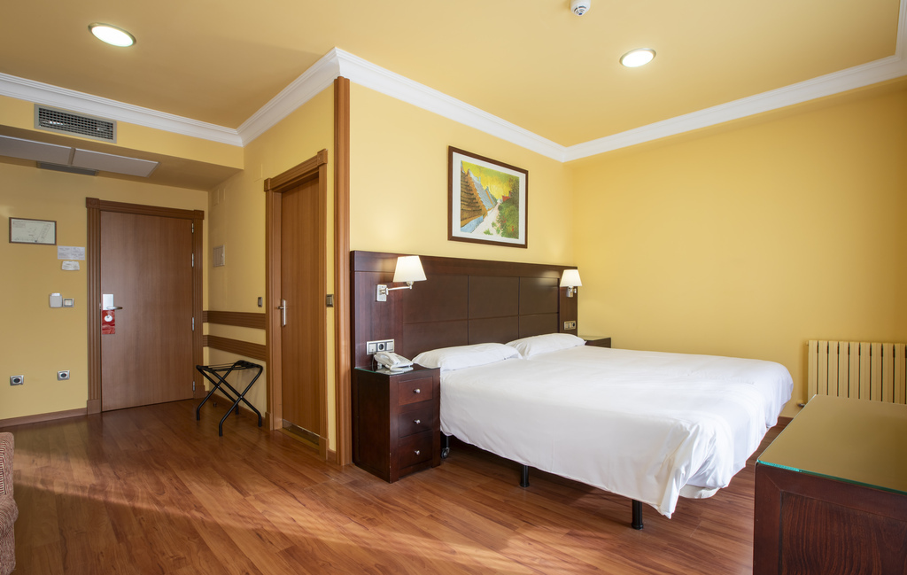 Habitación adaptada para personas con movilidad reducida, totalmente exterior. Equipada con calefacción, aire acondicionado, TV, escritorio, minibar y conexión WiFi gratuita.